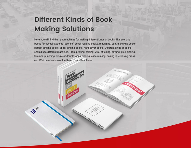 Kami menyediakan berbagai jenis buku yang menyelesaikan peralatan yang mengikat, termasuk buku latihan yang dijahit kawat untuk digunakan siswa sekolah, baik mesin pengikat semi -otomatis dan sepenuhnya otomatis. Untuk solusi otomatis, Anda harus menggunakan mesin pencetakan offset untuk mencetak sampul buku, lalu gunakan kami
